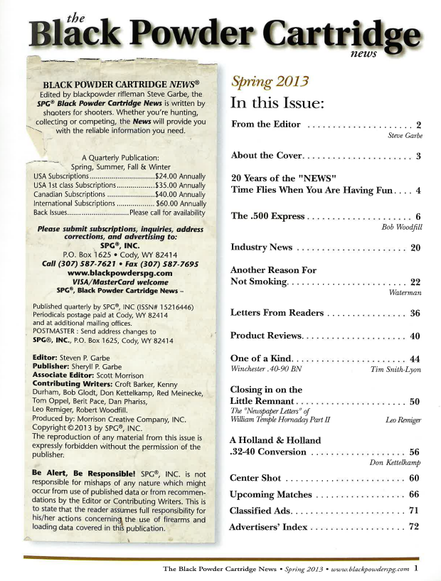 Published quarterly, The Black Powder Cartridge News provides all the reliable information you need to enjoy these revered firearms.
